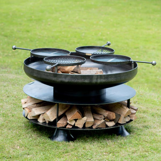 The combination of the fire bowl with swing arm BBQ rack, serving area and log store provides everything for the perfect outdoor cooking experien...
