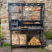 The Asado Maximo BBQ is big brother to our Asado Primera, offering a larger wheeled grill, longer rotisserie spit and extra warming rack this grill offers maximum cooking potential. The wheeled barbecuing grill allows ultimate temperature control so that you can lower your searing steaks or raise your slow cooking brisket with the turn of a handle. It is live fire cooking with heat control. The rotisserie can be used above the large wheeled grill in conjunction or you can use either the grill or rotisserie individually as both elements are removable.