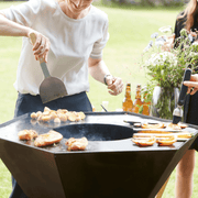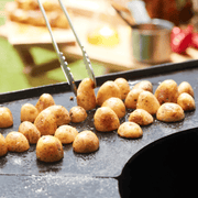 - Thanks to the raised rim, there are no grease drops on the terrace and ingredients cannot fall off the cooking plate.