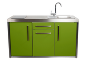 Elfin Compact MO 150S Outdoor Kitchen - With Sink on the Right, Fridge on the Left & Hob on the Left - Apple Green