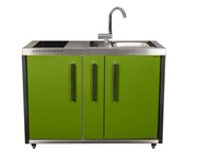 Elfin Compact MO 120A Outdoor Kitchen - With a fridge On the Left - With Sink On the Right - Hob On the Left - Apple Green
