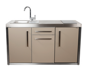 Elfin Compact MO 150S Outdoor Kitchen - With Sink on the Left, Fridge on the Right & Hob on the Right - Sand