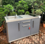 German made using high quality materials including stainless steel, this superb outdoor kitchen is portable, durable, modern and practical. Arrives fully assembled with a weather cover included.