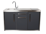 Elfin Compact MO 150S Outdoor Kitchen - With Sink on the Left, Fridge on the Right & Hob on the Right - Slate Grey