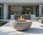 Outdoor living is the new lifestyle choice and one of our exclusive range of gas powered ‘fire pits’ will allow you to make more use, in greater comfort, of your outdoor space. A new concept in patio heaters, designed in the USA to enhance the outdoor spaces in your home or garden with a uniquely designed piece of garden furniture that serves a practical purpose. The Elementi range of gas ‘fire pits’, ‘fire bowls’ and ‘flaming tables’ are designed to complement a wide range of styles from contemporary to rustic and they will add to the appearance of any landscape, plus they provide warmth and the special visual attraction of ‘living’ flames. Although substantial these patio heaters (fire pits) are portable and can be moved to alternative locations/positions with relative ease. Available in ‘stone grey’ this Elementi Roca fire pit is cast in GRC with a smooth surface finish and will provide hours of significant heat. Full weather cover for the fire pit. This fire table/pit runs on an LPG gas bottle (not provided) and is supplied with a regulator and hose.