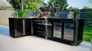 Goriller Outdoor Kitchen | 6-Burner Gas Grill, Sink Double Door Fridge & Workstation L-Shape | 4.5m Compact Luxury Design
