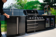 Complete Setup: Includes a 6-burner gas grill, deep stainless-steel sink with pull-out shower, double-door refrigerator, and workstation