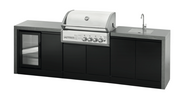GrandPro Outdoor Kitchen with CrossRay 4 Burner BBQ, Sink, Fridge and WaterFall - 3.5m