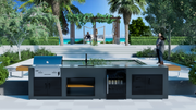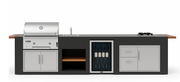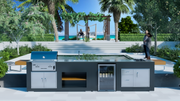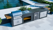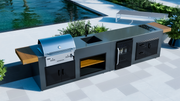 Model Details: "Medium Rare" is an enhanced version of the "Rare" model, featuring an expanded work surface, stainless steel sink, and showcase drink cooler, adding to a premium outdoor kitchen experience.