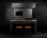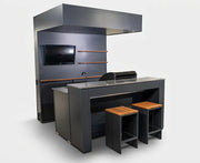 Grillandia Outdoor Kitchen Open Pro Gas Grill Cabana, Stools, 40" TV, and Sink | 2M