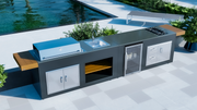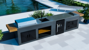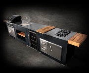 The "Medium Rare" is an expanded version of the "Rare" model, offering a more comprehensive outdoor kitchen experience. It includes a professional gas grill, built-in gas hob, larger work surface, stainless steel sink, and a showcase drink cooler.
