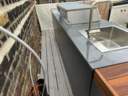 The Medium Rare model is an enhanced version of the "Rare" model, offering additional features like a professional-grade gas grill, built-in gas hob, expansive work surface, stainless steel sink, and a showcase drink cooler for an elevated outdoor cooking experience.