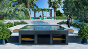 - Upgraded Model: The "Medium Rare" model is an expanded version of the "Rare." It includes a professional gas grill, built-in gas hob, larger work surface, stainless steel sink, and a showcase drink cooler for a complete outdoor kitchen experience.