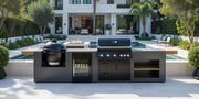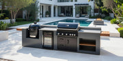 Grillandia Outdoor Kitchen Paired with Whistler Burford 5 Burner, Primo LG300, and Fridge | 4m