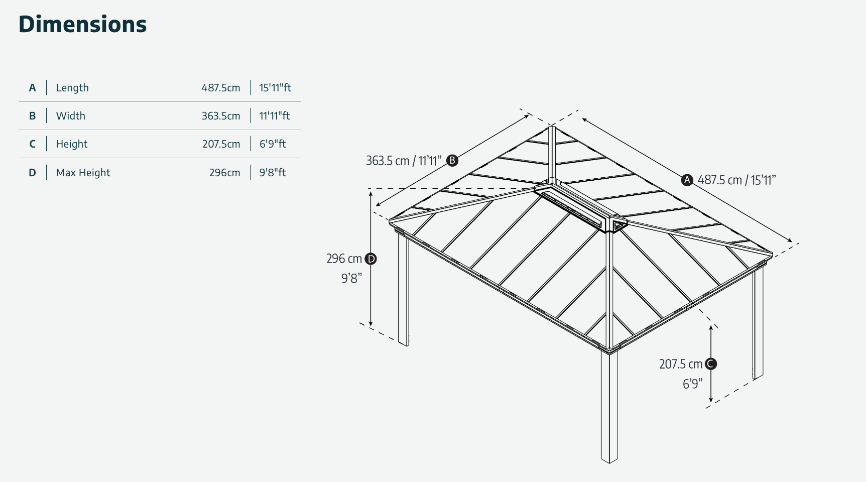 Dallas 12 ft. x 16 ft. Gazebo Kit - Grey Structure