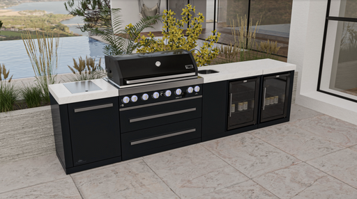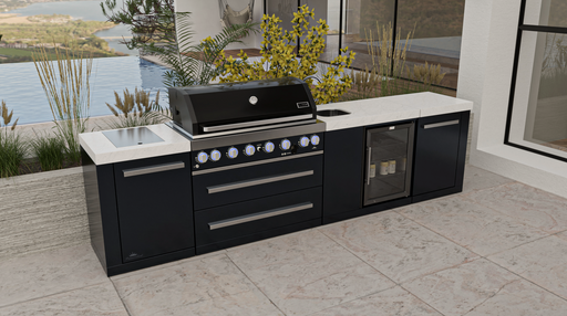 Mont Alpi Outdoor Kitchen Black, 6 Burner, Fridge, Sink and Weather Cover - 3.4m