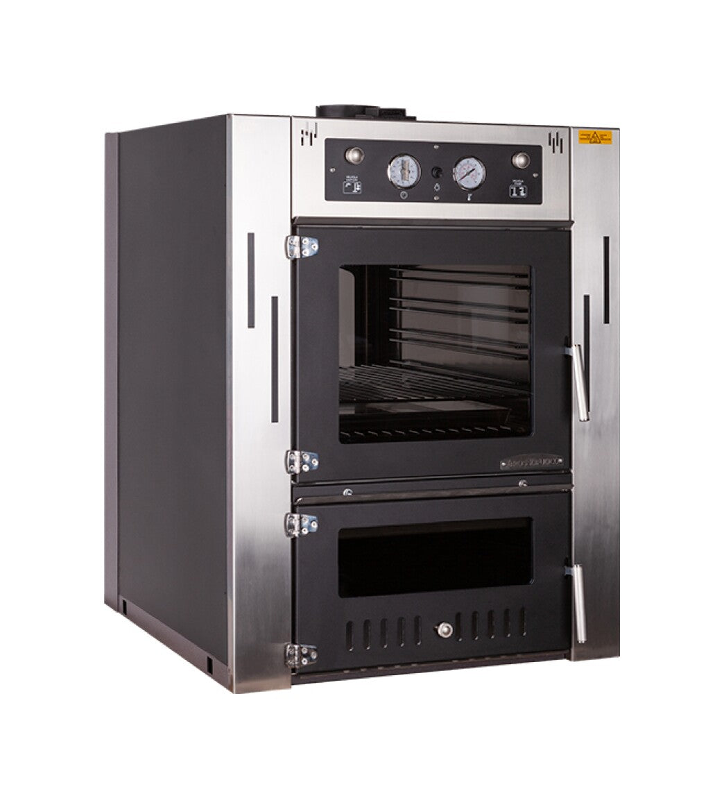 Rossofuoco QUATTROSTAGIONI Built-in double-sided wood-fired oven 75 x 80 cm with separate combustion - anthracite/steel