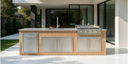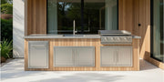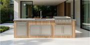 The Alpha Forge Outdoor Kitchen Plancha Grill and Sink Station | 273cm x 60cm Light Oak Cladding