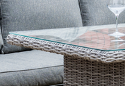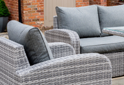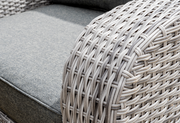 The Longbeach Lounge Sofa Set from Norfolk Leisure's popular Handpicked Range is a luxurious 7 seater outdoor rattan set that not only looks great, but is comfortable and low maintenance. This superb designer garden sofa set is made with a high quality double half round grey weave woven onto strong, rust free aluminium frames. Featuring deep seating chairs and sofas with thick comfy cushions makes this garden furniture ideal for both relaxing and dining.