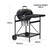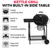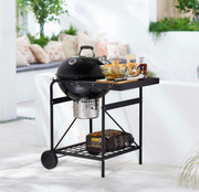 - Charcoal fuelled kettle grill with side table