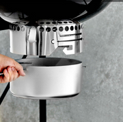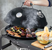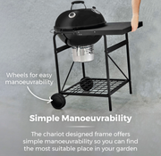 Create all your BBQ favourites for the whole family with this Kettle Grill from Tower. The large cooking area has a 54cm diameter that offers plenty of space for family sized cooking, whilst the built-in side table offers space to prepare meals with ease. There is also enough space to store cooking utensils and a drink so you can stay hydrated when cooking. Wheels on the frame allow you to move the kettle grill around the garden with ease so you can find the perfect spot to cook. The lid is fully removeable and when slotted into the built in storage it reflects the heat to maintain a good cooking temperature. An ash catcher located underneath the drum will allow for simple and fuss-free ash disposal, whilst an airflow vent and thermometer will let you control the temperature to ensure perfect results every time