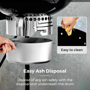 - Built in aluminium ash collection tray