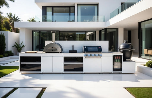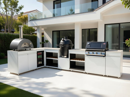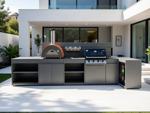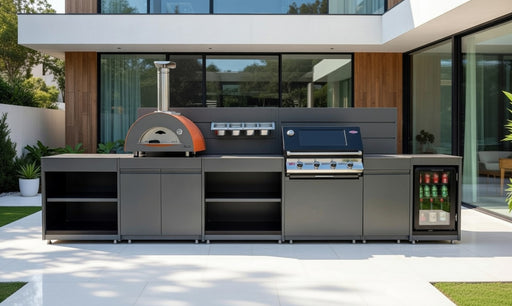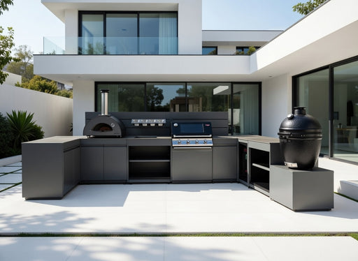 View full detailsVision Outdoor Kitchen L Shape Fridge Pizza oven, Kamado, and Barbecue Grill