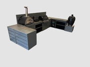 Vision Outdoor Kitchen U Shape Fridge Pizza Oven, Kamado, and Barbecue Grill