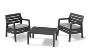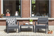 Finished in a contemporary dark grey slatted wood effect resin, with complimentary cushions, the Delano boasts ultra modern design to bring your space immediately up to date. The resin used is also weather resistant to prevent rusting, decay, rot, and peeling, so you can enjoy this set for seasons to come.