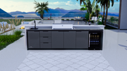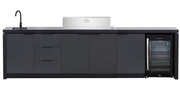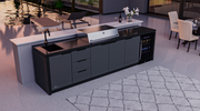 The Cabinex Premium Outdoor Kitchen is a luxurious way to style your garden or patio space. Featuring a high quality aluminium frame complimented by waterproof PVC panels, reducing the maintenance required for this item. The Cabinex 6 Burner ODK also includes a 108L triple glazed Single Door Fridge, generous Cupboard space & 3x Large Drawers, a Mixer Tap & Large Sink. The black porcelain bench tops are resistant to scratching, high temperatures and UV rays for long lasting protection from the unpredictable UK weather.