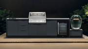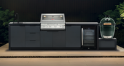 BeefEater Cabinex Premium 4 Burner Outdoor Kitchen with Fridge and Sink features the high-powered, high-quality Beefeater 7000 Classic 4 Burner Gas BBQ. The units included are the double door (underneath the BBQ) a single-door sink module, a fridge module, a 3-drawer module, and a single-door cupboard module. All of this combined gives ample storage. You also get a Cabinex single fridge to further your outdoor living by keeping your drinks nice and cool while you enjoy the day. The matt black sink and tap allow you to clean up as you go and save having to drag it all to the kitchen.