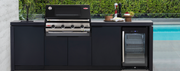 The Cabinex Classic Outdoor Kitchen is a luxurious way to style your garden or patio space. Featuring a high quality aluminium frame complimented by waterproof PVC panels, reducing the maintenance required for this item. The Cabinex 5 Burner ODK also includes a 108L triple glazed Single Door Fridge, generous Cupboard space, a Mixer Tap & Sink. The black porcelain bench tops are resistant to scratching, high temperatures and UV rays for long lasting protection from the unpredictable UK weather.