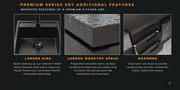 The Cabinex Premium Outdoor Kitchen is a luxurious way to style your garden or patio space. Featuring a high quality aluminium frame complimented by waterproof PVC panels, reducing the maintenance required for this item. The Cabinex 5 Burner ODK also includes a 108L triple glazed Single Door Fridge, generous Cupboard space & 3x Large Drawers, a Mixer Tap & Large Sink. The black porcelain bench tops are resistant to scratching, high temperatures and UV rays for long lasting protection from the unpredictable UK weather.