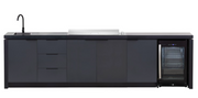The Cabinex Premium Outdoor Kitchen is a luxurious way to style your garden or patio space. Featuring a high-quality aluminum frame complimented by waterproof PVC panels, reducing the maintenance required for this item. The Cabinex 6 Burner ODK also includes a 108L triple glazed Single Door Fridge, generous Cupboard space & 3x Large Drawers, a Mixer Tap & Large Sink. The black porcelain bench tops are resistant to scratching, high temperatures, and UV rays for long-lasting protection from the unpredictable UK weather.