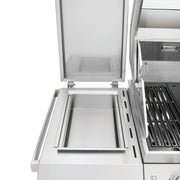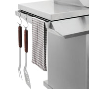 The stainless steel trolley comes complete with a handy side burner on the right, icebox with chopping board on the left and handy accessory rails on both sides.