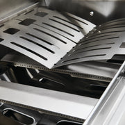 The cast stainless steel burners are paired with a set of stainless steel vaporisers, which will not only limit flare-ups but will also enrich the flavour of your food and deliver equal heating capacity. The internal drip tray collects any fat and oil droplets for simple maintenance.
