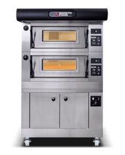 These Moretti Forni Series P Heavy duty bakery deck ovens are ideal for Cooking bread and other bakery products, supplied as standard with Embossed steel sheet oven floor but can be supplied with a refractory stone base on request and with availability of having an inbuilt steam generator they are the ideal choice for discerning bakers. The oven is supplied with the decorative canopy and proofer on castors.