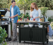 The Keter BBQ Double Table in Anthracite from Norfolk Leisure is an outdoor storage unit and cooking preparation area, perfect for storing utensils and equipment when not in use. The BBQ Double Table also provides a durable upper surface for any catering needs. Made with resin and fully weather resistant materials, this table requires little to no maintenance.