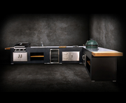 Our outdoor kitchens are designed for easy, on-site assembly with a clean, modern style. Thanks to a laser-cut cleat system, setup is a breeze. With just two people, a screwdriver, and the special adhesive provided, you can assemble your kitchen with ease. Follow the included instructions or watch our video tutorials for guidance. While most of the assembly is simple, professional installation is required for connecting water, gas, or electricity. A crown-cutting tool is included for precision, along with detailed manuals.