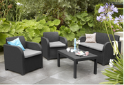 This value-for-money patio set includes 1x Two-Seat Sofa, 2x Chairs, 1x Coffee Table and polyester cushions. Also supplied with an extended 3 year manufacturers warranty.