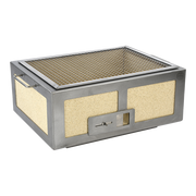 The Medium Wide Kasai Konro grill with its British made stylish brushed stainless steel finish, floating feet, handles and a natural sustainable mineral tiles is perfect for both home use and the rigours of a professional kitchen. It is the perfect size for any surface due to its compact design. Offering versatility, better flavour and a more enjoyable cooking experience than you would ever imagine. Not only is it a game changer for grilling meats, fish, vegetables, it is the ultimate sous vide finishing tool, and believe us we have tried a lot of sous vide cooked food.
