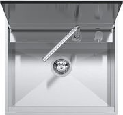 LAB COVER 316 is a built-in flush sink with a 57x51 cm bowl. with lid plus tap.