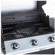 The classic black coloured Outback Magnum 3 Burner Hybrid gas barbecue makes it a popular choice for many. It includes interchangeable multi-cooking surface grill, which can be switched to other Outback MCS surfaces such as pizza stone, griddle, wok, paella dish, steak grate etc, for extra versatility in your cooking experience. It comes with a charcoal basket as an option to cook with Outback Coconut Shell Briquettes, offering guests that authentic charcoal taste, with easier charcoal lighting using gas. With a warming rack, side burner and side table, new improved temperature gauge, roasting hood, the Magnum comes with three stainless steel burners, tool rack, magnetic bottle opener, easy to clean drip tray and integral ignition. Magnum 3 Burner is supplied with hose and propane regulator.