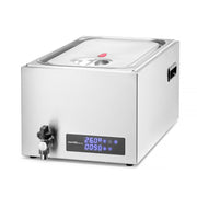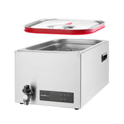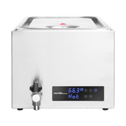 This 28litre water bath also includes a tap for draining after service. Side lifting handles make movement of this water bath easy. This water bath is easy to use, offers energy efficiency and is simple to clean. It is fitted as standard with large LED’s, optical and acoustic alarm signals for time and temperature, and a stainless steel lid. SousVideTools water baths are quick and easy to set up. Simply select the desired temperature by operating the buttons on the ‘positive feel’ membrane control pad. A large illuminated digital display - readily visible from across the kitchen - gives you instant confirmation of the set temperature at all times within 0.1°C.