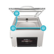 Vacuum Packing has never been this easy. Just put the food in the bag and close the lid. That’s all! No settings to enter. No readjustments. Our vacuum packer detects the size, amount, and type of food. It can also tell whether the food is liquid or porous, whether the bag is thick or thin, or even made of metal. It also monitors and regulates the temperature of the sealing bar and recalibrates automatically based on variations in atmospheric pressure.