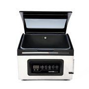 The SousVideTools® Senses 300 Chamber Vacuum Packer is engineered to be user-friendly, but with endless possibilities for commercial use. Customisable vacuum and seal methods offer a variety of packaging options. It functions with a simple press of a button, perfectly vacuum sealing everything from dry foods to liquids like soups or stews. A choice of three pre-programmed cycles provide optimum vacuum levels and hold times for sealing meat, fish, even infusions; and the automatic marinating cycle takes its remarkable abilities further still. The seal timer is adjustable to allow for a variety of bag thicknesses and consistencies. The machine also has a “Stop” option, which will immediately start the seal process. To vacuum package, place the bag inside the chamber, close the lid, and the process starts! Air is sucked out of the entire chamber, not just the bag itself, allowing air pressure on the inside and outside of the bag to remain equal and liquids to stay in the bag. The bag is then sealed and air is returned back into the chamber.