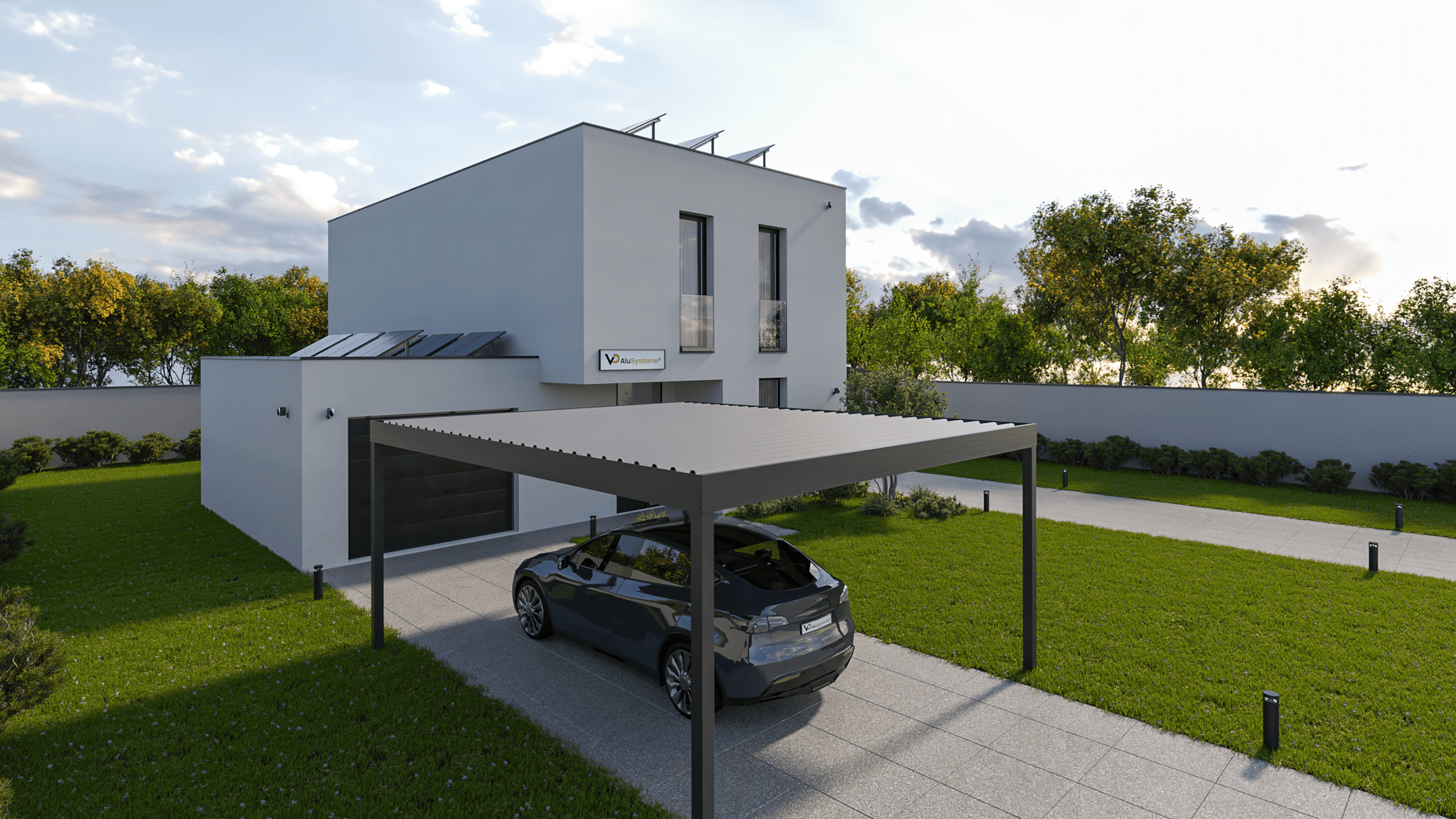 The flat roof Flat Line is the ideal solution for all those who are looking for a perfect carport. This product not only offers first-class quality, but also convinces with its versatile applications. With the flat roof Flat Line you can not only integrate your PV system, but also realize a greening.