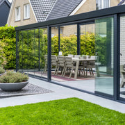 The Pigato is the luxury aluminium veranda of the Deponti product range. This veranda is reinforced with a steel strip in the gutter profile, meaning that this veranda can be fitted with a laminated glass roof. This will give you the perfect lighting allowing you to enjoy your outdoor views without losing light in your home, providing a sense of enrichment and pure luxury.