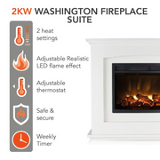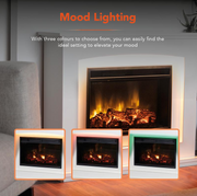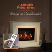 Introduce a staple fireplace feature to your living space with a choice of temperature sensor controls and a 7 day programmable timer. The remote control allows you to adjust between temperatures up to a 2000W setting, schedule the fireplace to operate over a 7 day, 24 hour period and set your preferred mood lighting brightness. With a choice of 3 colours; red, green or blue, the flame effect display gives the look and feel of a real fire, which can also be operated individually as a visual feature. The ivory effect mantelpiece design creates a focal feature in your living area, with no assembly required so you can begin operation at your earliest convenience. The safety cut out feature ensures safe operation during use.