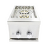 The Whistler Grills Burford Side Burner 5 is constructed from 304 stainless steel and made to match the style of your Whistler Burford 5 grill, this double side burner features two brass burners emitting 24,000 BTUs total heat output. Two blue LED lights illuminate the ignition knobs. Durable 7.5 mm stainless grates can handle pots of any weight. Comes standard with stainless lid to help protect against the elements.